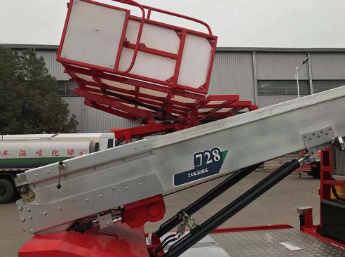 配置液压双顶自卸油缸,举升平稳,承载量大。可以实现平头载荷300KG,最大作业高度28米,最大作业幅度13米,工作平台1100mmX1000mmX450mm,7节同步伸缩臂,180度回转,H型二节伸缩支腿,单独可调节,工作平台和地面遥控器电气操作,转台液压操作,液压自动调平,梯臂采用韩国整装进口,因为韩国的搬家服务发展比较早,已经有了非常优质的服务和成熟的云梯技术。进口品牌的最大的优点在于质量稳定、经验丰富、技术过关。再结合国内使用情况,进行了适当的调整和优化,使之更适用于中国国情。云梯搬家车的云梯单次载重400公斤,作业高度28米,该车主要用于工程租赁,幕墙施工、楼顶太阳能、楼顶防水作业,广告高炮,电力维修,空调室外机安装,船舶维护,搬家公司,水泥沙子搬运,路桥修护等多种功能。蓝色牌照,C证驾驶,无需特种操作证。非营运车辆,使用期限长。
