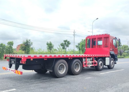 国六东风柳汽8*4平板车,现货优惠促销,随提随走。整车尺寸:9800/10300 /10500mm,上装形式可以任意选装,纯工程自卸底盘,品质保证。乘龙前四后八挖机平板拖车采用乘龙H5前四后八自卸工程车底盘改装,结实耐用,此款车型为短轴距车型,转弯半径小,能轻松驾驭山路大弯道多转弯道路,轴距为3.35米。